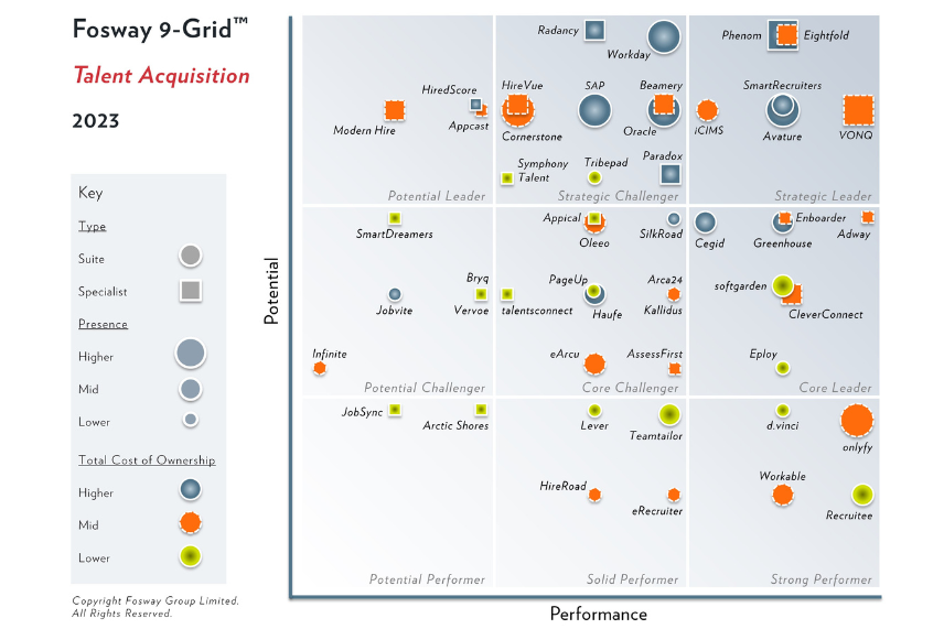 We’re beyond thrilled that we’ve been confirmed as a Strategic Challenger in the 2023 Fosway 9-Grid™️ report for talent acquisition for the second year in a row. (If you’re not sure who Fosway are, they’re Europe’s number one HR software analyst.)